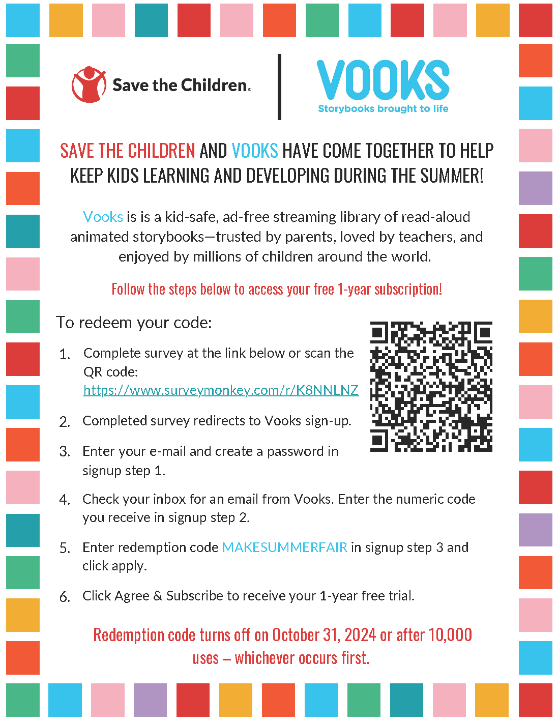 *Save the Children* has partnered with *Vooks* to provide learning resources for students at home!